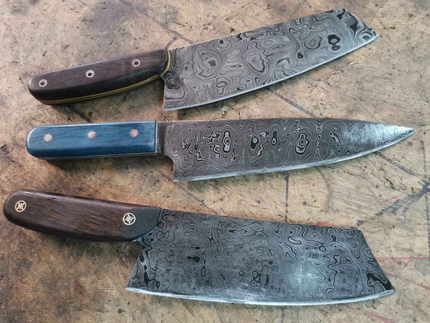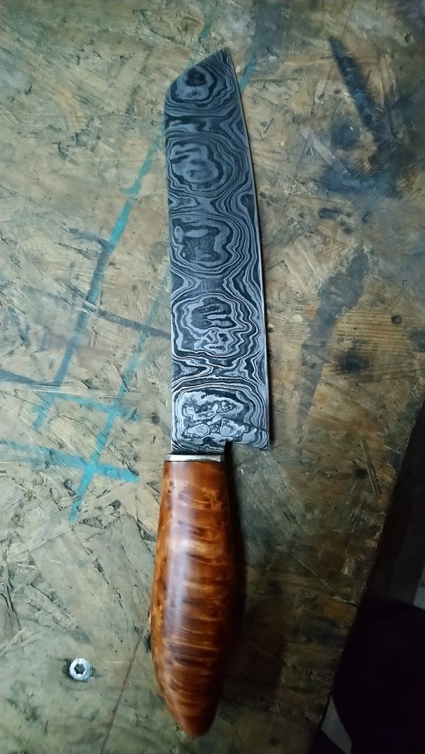 das selbstgeschmiedete Damaszenerstahl-Messer